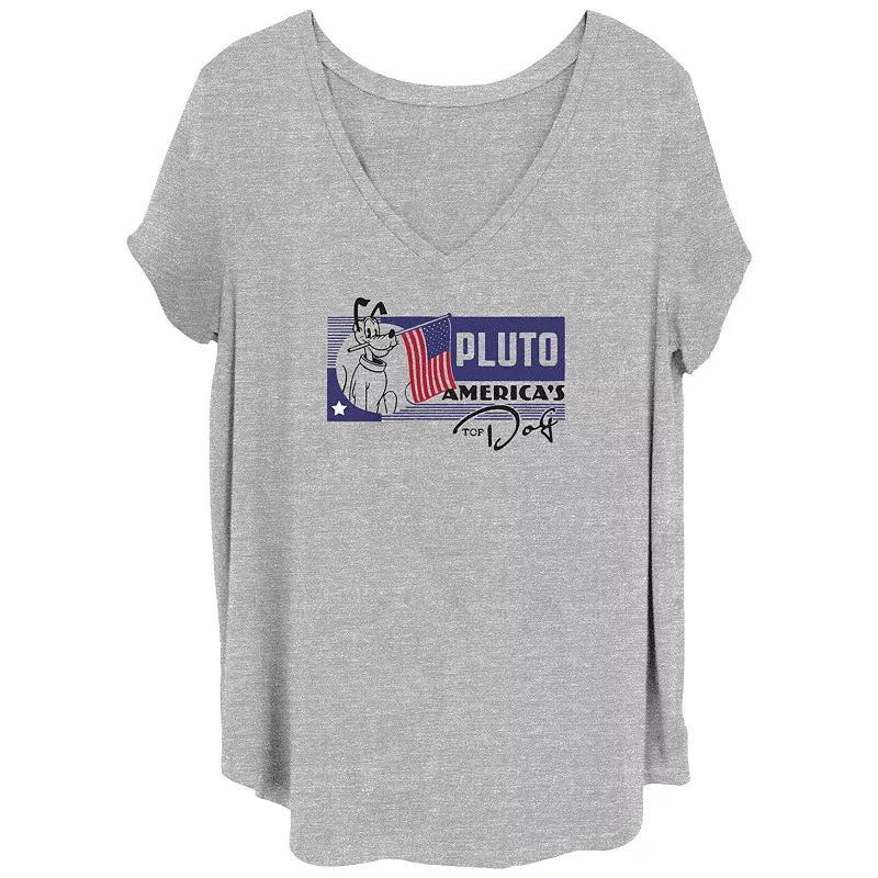 Disney's 100th Anniversary Women's Pluto America's Top Dog V-Neck Tee, Girl's, Size: 4XL, Grey Gray