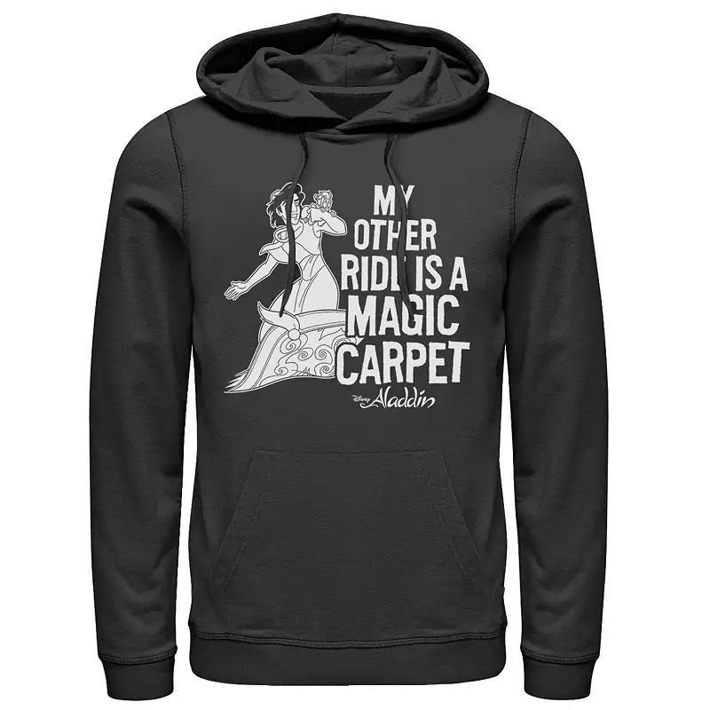 Make your wishes come true with this men's Aladdin hoodie. © Disney Drawstring hood Long sleeves 1-pocketFABRIC & CARE Cotton, polyester Machine wash Imported Color: Black. Gender: male. Age Group: adult. Material: Fleece.