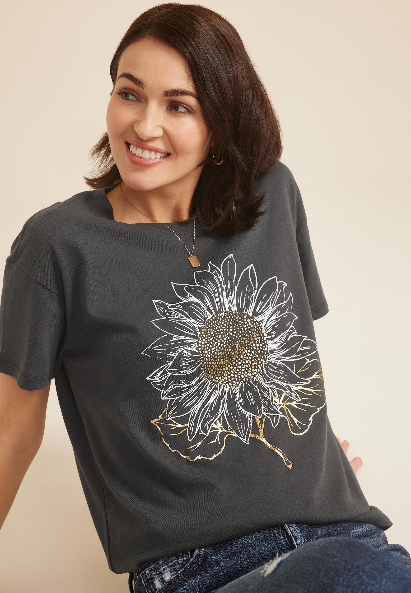 Show off your style with this juniors Sunflowers Paint v-neck graphic tee. Show off your style with this juniors Sunflowers Paint v-neck graphic tee. FEATURES Short sleeves V-neckFABRIC & CARE Cotton, polyester Machine wash Imported Size: 3X. Color: Heather Gray. Gender: female. Age Group: adult.