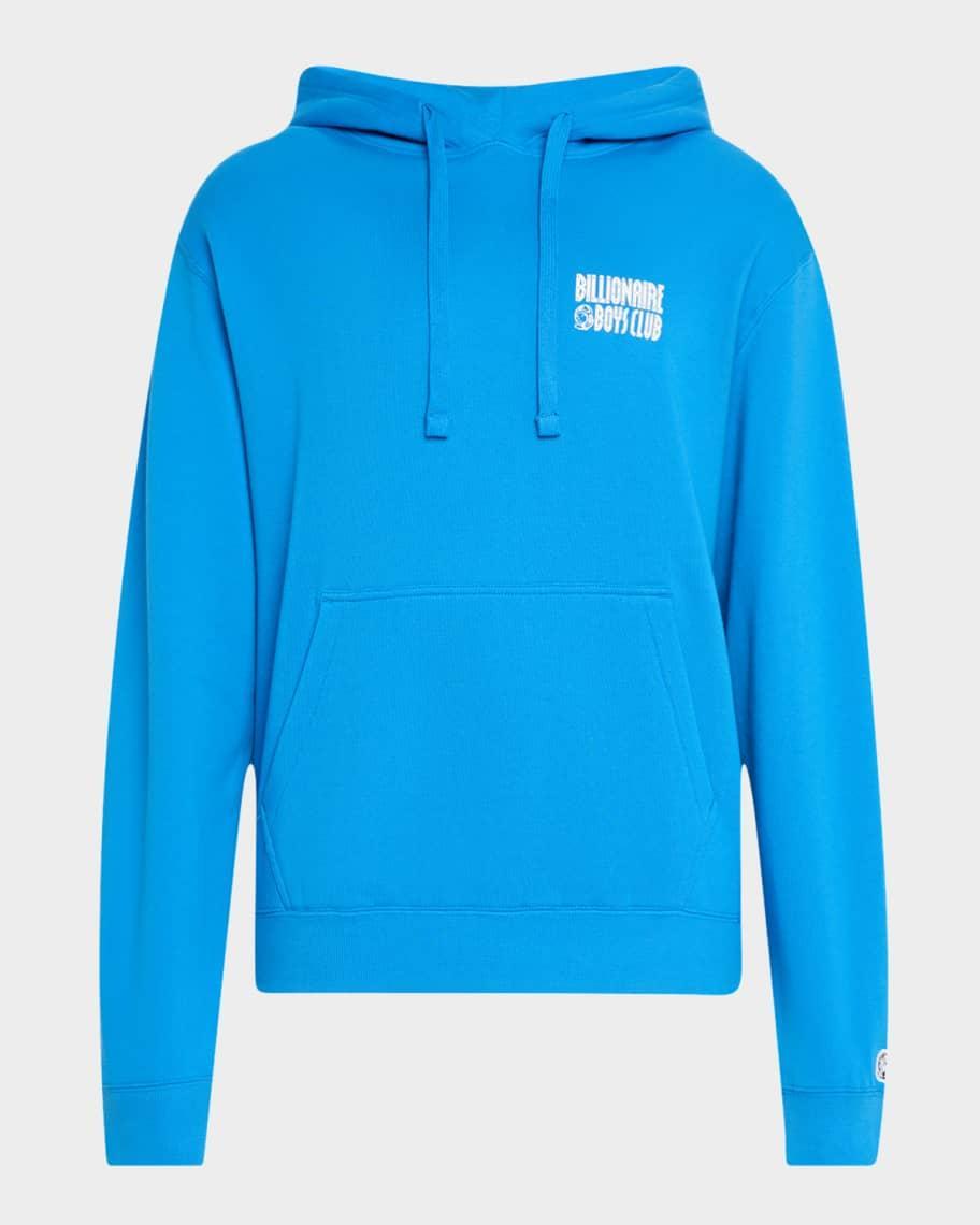Billionaire Boys Club sweatshirt showcasing a large graphic with four astronauts walking on Mars Adjustable drawstring hood Graphic logo print on chest Kangaroo pocket Long sleeves Ribbed cuffs and hem Relaxed fit Pullover style Cotton Hand wash Imported
