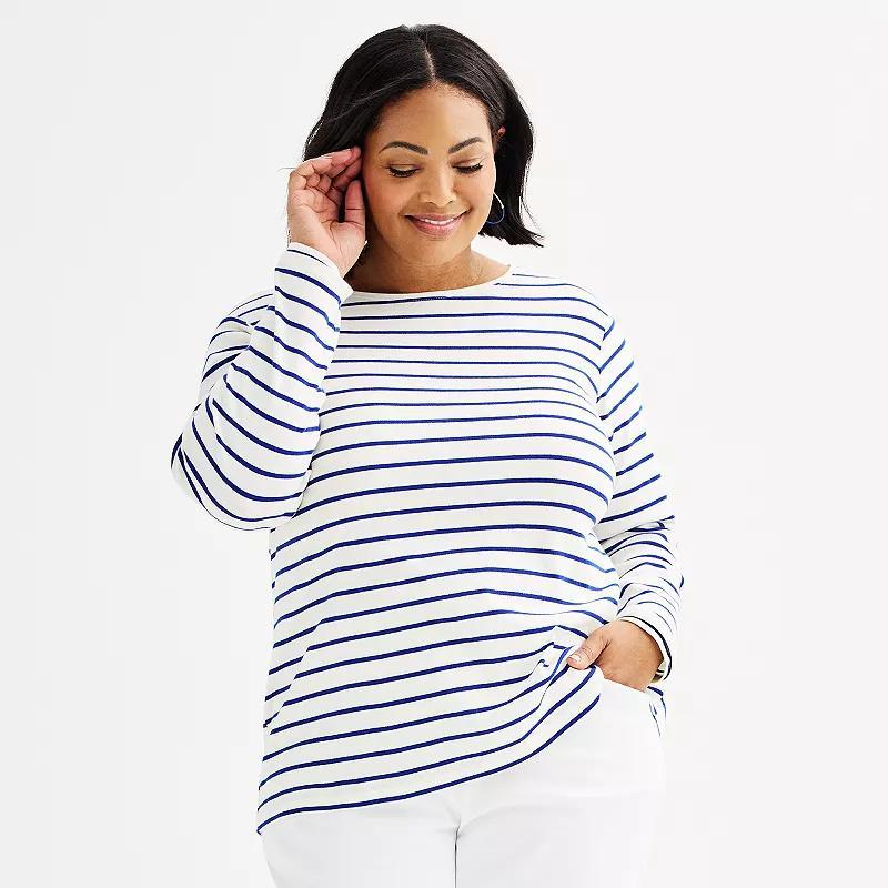 Upgrade your basics with this womens Croft & Barrow crewneck tee.Click on this WOMENS GUIDE to find the perfect fit and more! Crewneck Long sleevesFABRIC & CARE Cotton, polyester, spandex; Cotton Machine wash ImportedSUSTAINABILITY FEATURES Supports more sustainable cotton farming Size: 3X. Color: Ivory Classy Stripe. Gender: female. Age Group: adult.