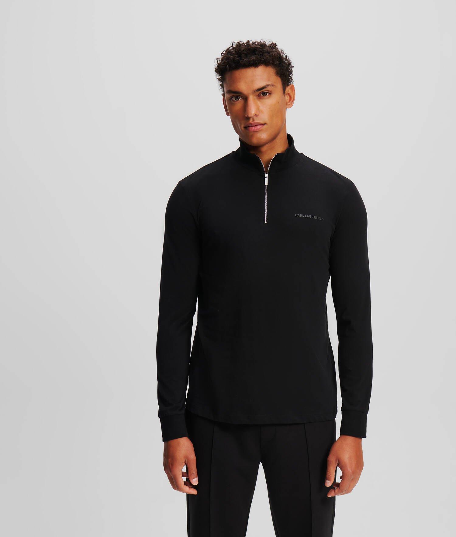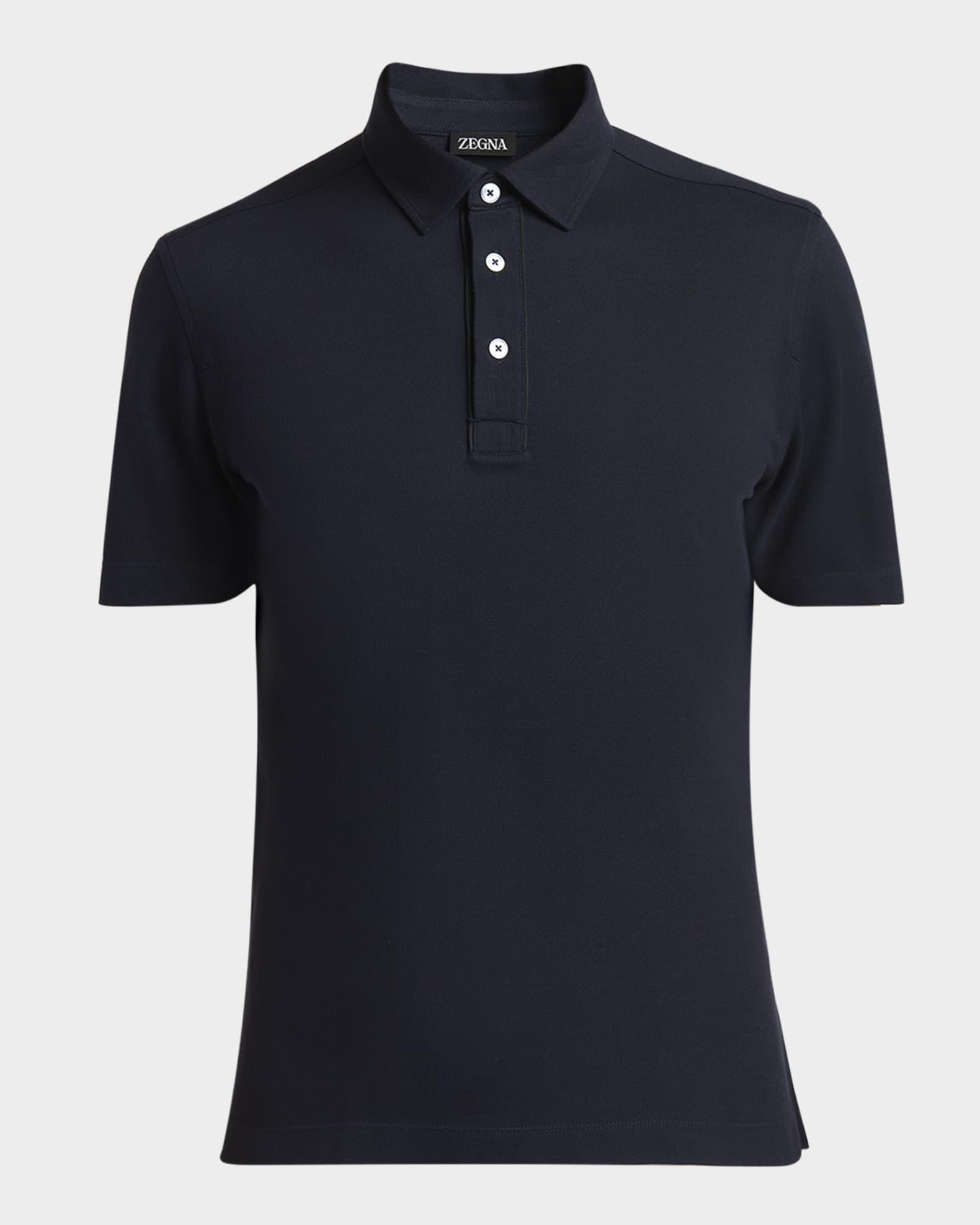 Regular fit polo shirt made of cotton piqué fabric. Lapel collar with front zip closure. Short sleeves. Ribbed trim.