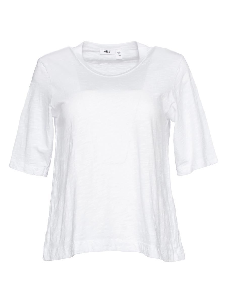 This long sleeve cotton slub tee from Wilt features a scoopy neck and longer back. Scoop neck Long sleeve Pulls over 100% Cotton Machine wash cold, tumble dry low Made in USA SIZE & FIT About 25 from shoulder to hem Model measurements: 59 tall Model is wearing a US size Small ABOUT THE BRAND Classically trained in pattern making and draping, Roxanne Heptner founded Wilt in 2008 on a mission to create a line of beautifully shaped, uncomplicated tees. Clean lines, uneven hems and playful proportions that would give women a soft, lived-in alternative to what was not being offered in the market. Lsd Rtw - Womens Rtw Lsd Mp > Wilt > Saks Fifth Avenue > Barneys. Wilt. Color: Midnight. Size: Medium.